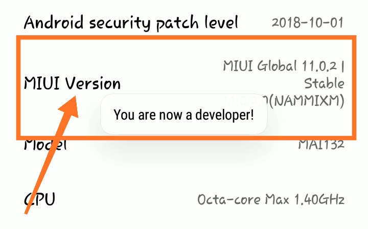 Steps 3. नीचे की तरफ आपको एक MIUI Version का ऑप्शन दिखाई देगा। उस पर आपको लगातार 5 से 7 बार क्लिक करना होगा। तो आपको एक pop up message दिखाई देगा।